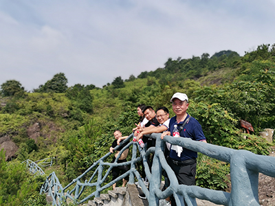 We gathered at the company at 7 am, took our food and learning equipment and set off to Phoenix Mountain in Baishi. We reached the foot of the mountain at 7:40 and started climbing. The mountain is very high and the road is far away. Due to physical reasons, some members are waiting on the mountainside, but others are still moving forward. The air on the mountain is exceptionally fresh, and there are beautiful scenery along the way.